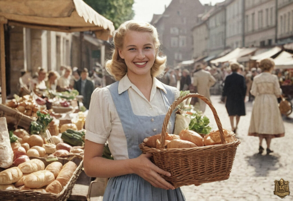 In der Bildserie „Deutschland 1950“ werden Szenen des Aufbruchs und der Hoffnung nach dem Zweiten Weltkrieg lebendig. Im Mittelpunkt steht eine junge blonde Frau, die sinnbildlich für den Neubeginn einer ganzen Generation steht – zwischen Trümmern, Wiederaufbau und dem Erwachen einer neuen Zeit.